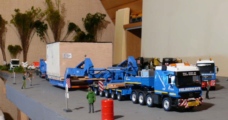 MB 4160 MP 2 Titan Goldhofer 180 t Kesselbrücke auf THP Achslinien und MAN FE 600 A als Schubmaschine.