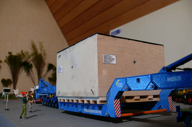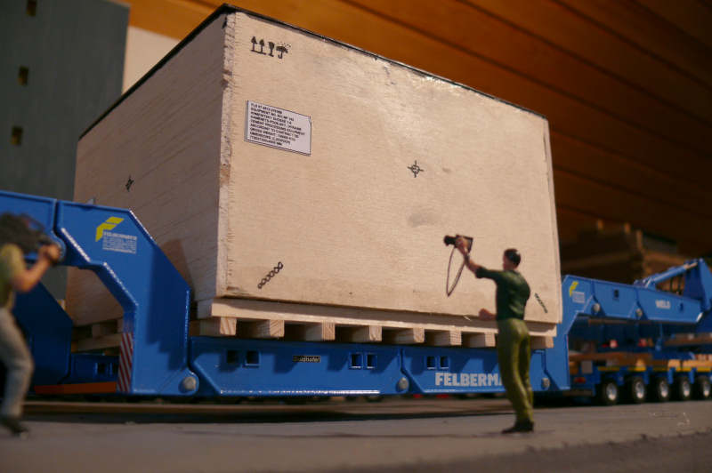 Umwelteinflüssen zu schützen wurde das Maschinenteil in einen Holzverschlag eingepackt.