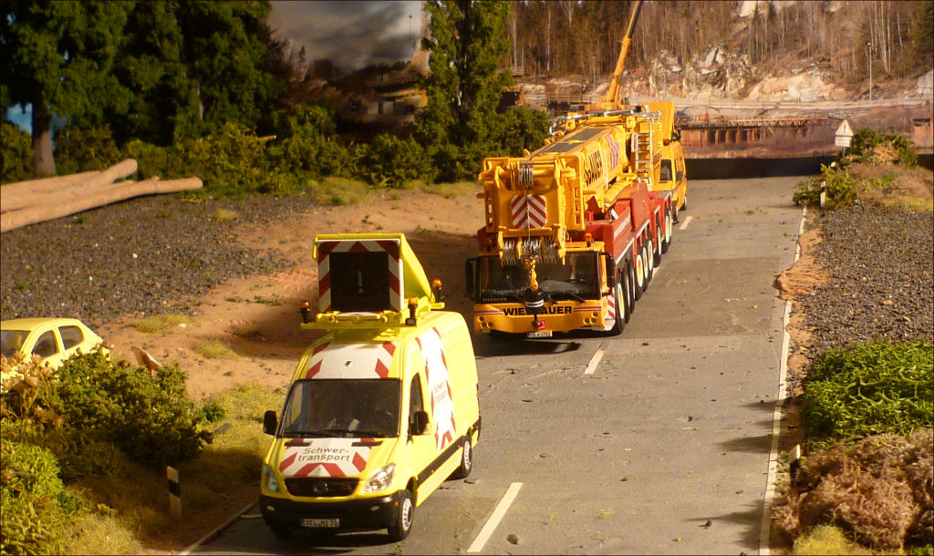 Die Bilder zeigen das Modell imTransport, mit zwei Begleitfahrzeugen.