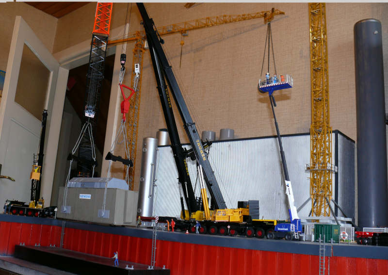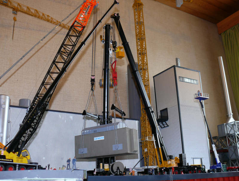 den Trafo alleine halten kann, wird die Flasche des LTM 1400 ausgehakt und der 400er aus dem Schwenkbereich gedreht.