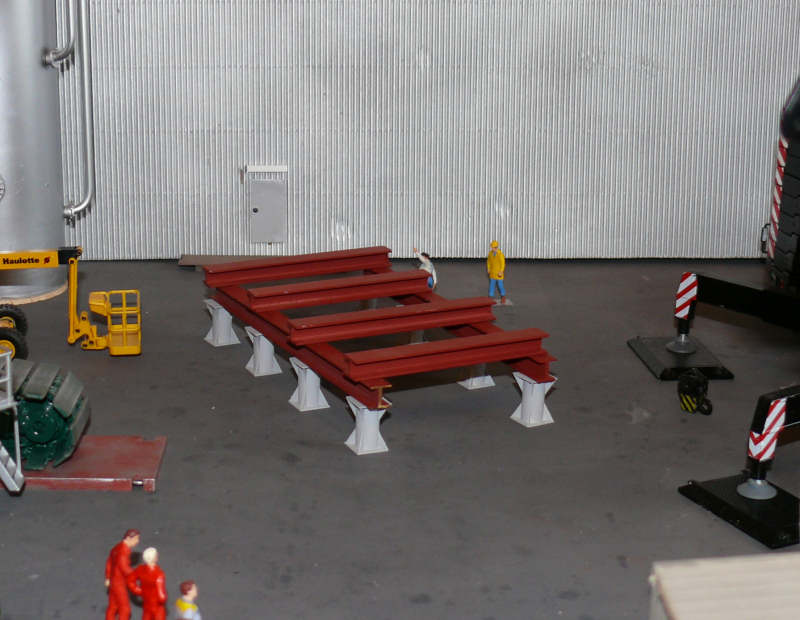 Danach wird der Trafo auf einem Gerüst aus Elefantenfüssen und Stahlträgern abgesetzt,