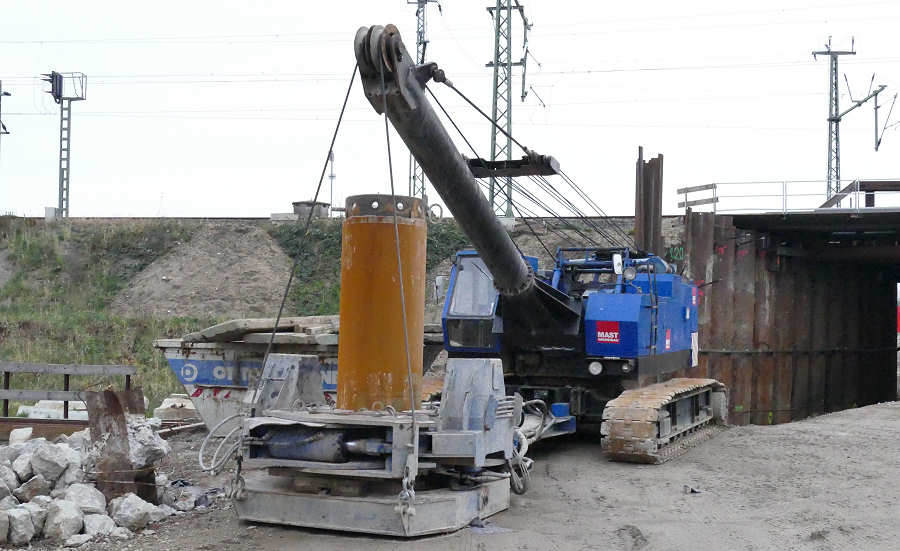 war für Grundbauarbeiten der neuen Eisenbahnbrücke über die neue B 75 in HH Wilhelmsburg im Einsatz.