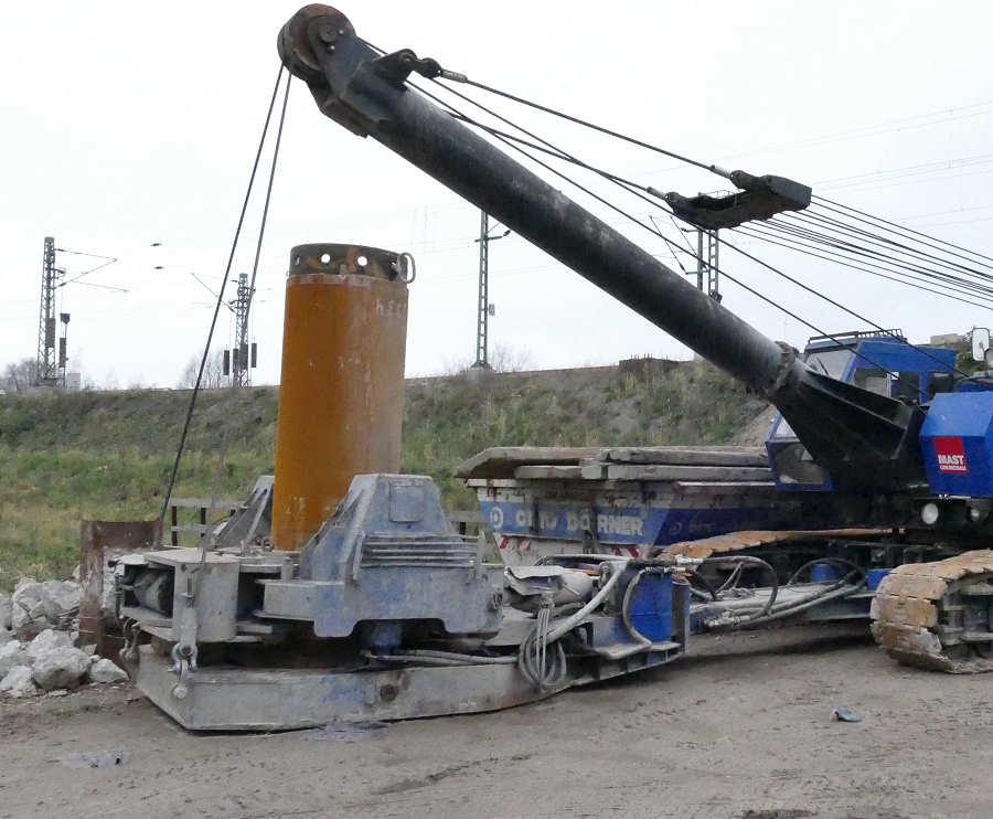 gesetzt. Der Seilbagger wurde dafür mit Bohrgreifern und Verrohrungsmaschine konfiguriert.