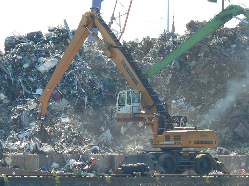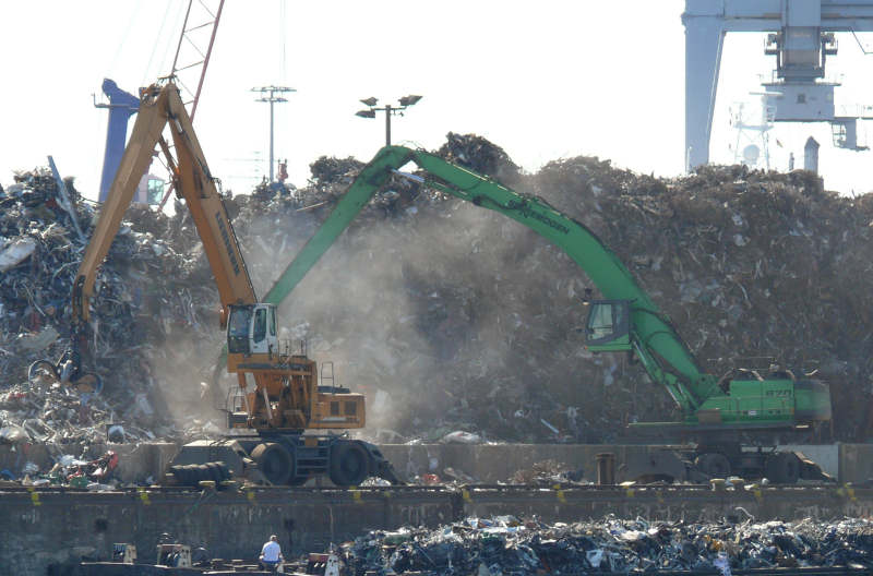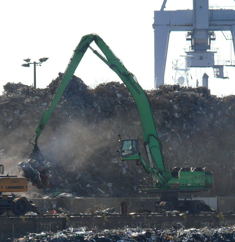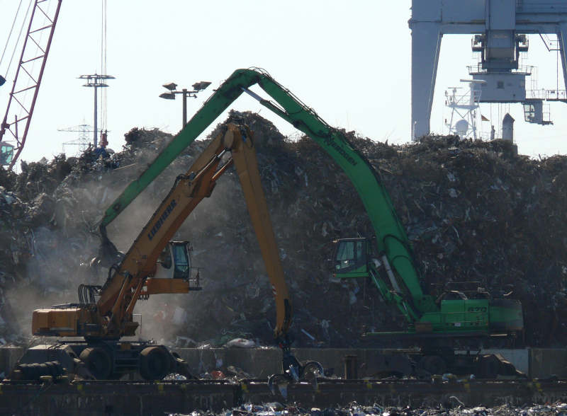 Schrottverladung im Hamburger Hafen Zwei Mobil Umschlaggeräte im Einsatz |