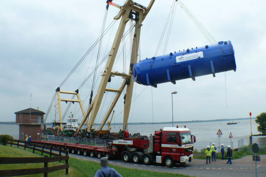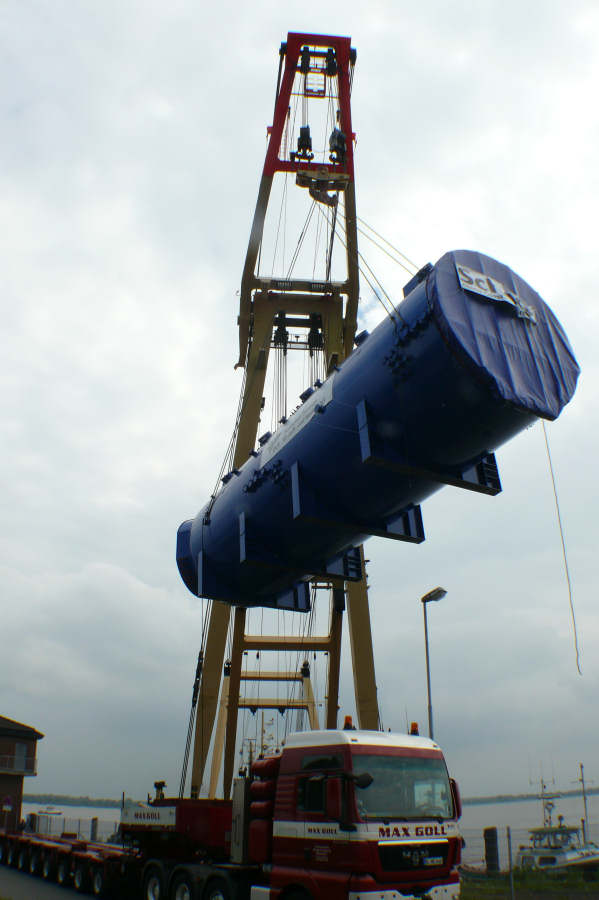 Max Goll, Autoklaven Verladung durch Schwimmkran Enak