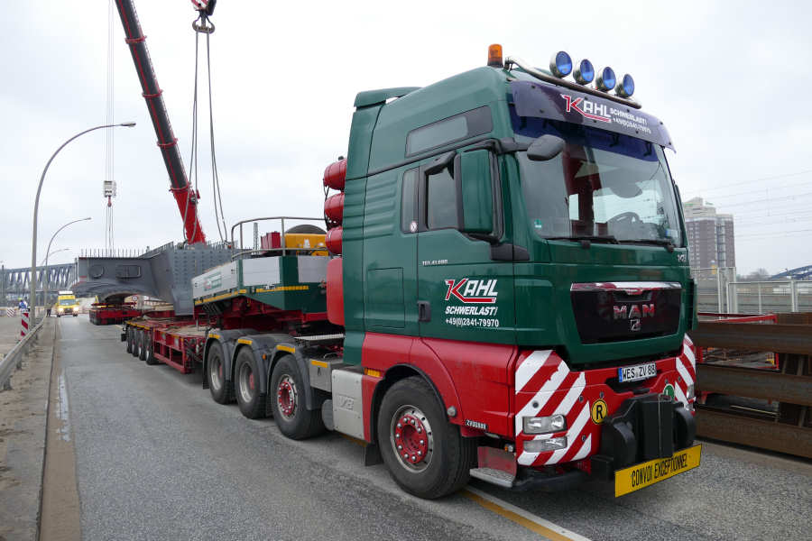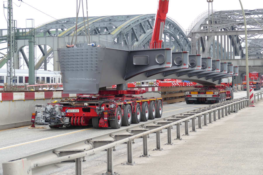Die Binder waren 34 m lang und hatten beide ein Gewicht von rund 75 t, angeliefert wurden sie durch Kahl Schwerlast.