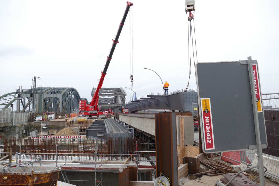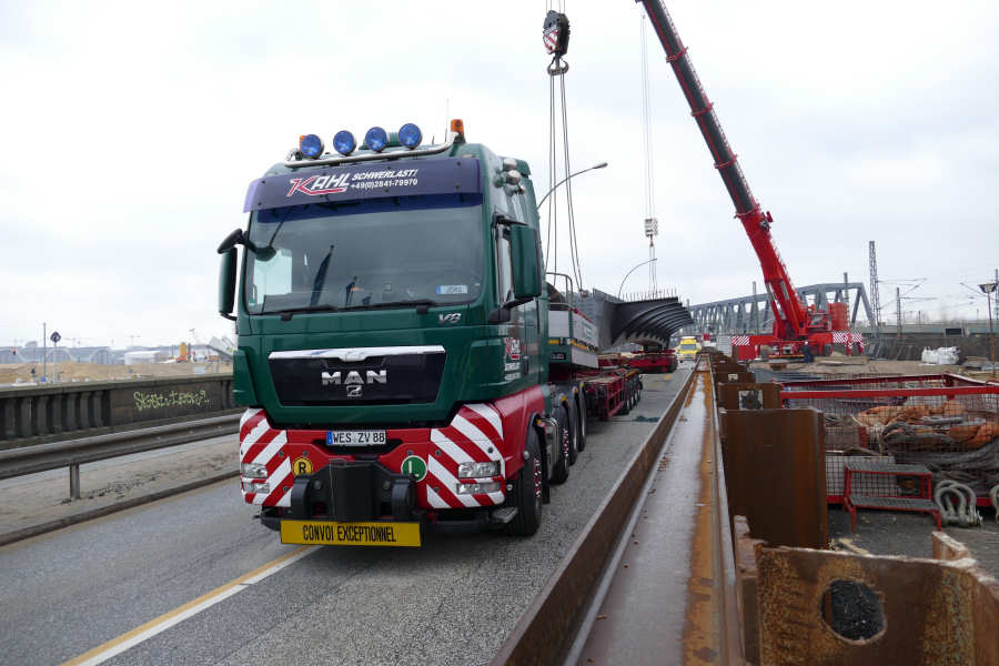 Mitte März 2015 wurden zwei Stahlbinder für den ersten Bauabschnitt der neuen Brücke über die