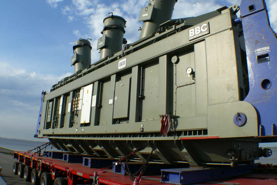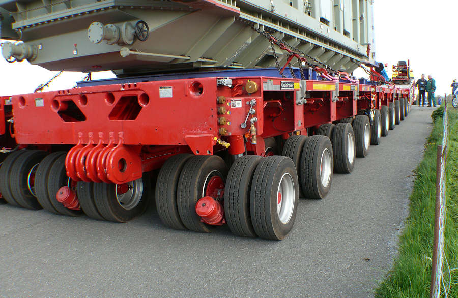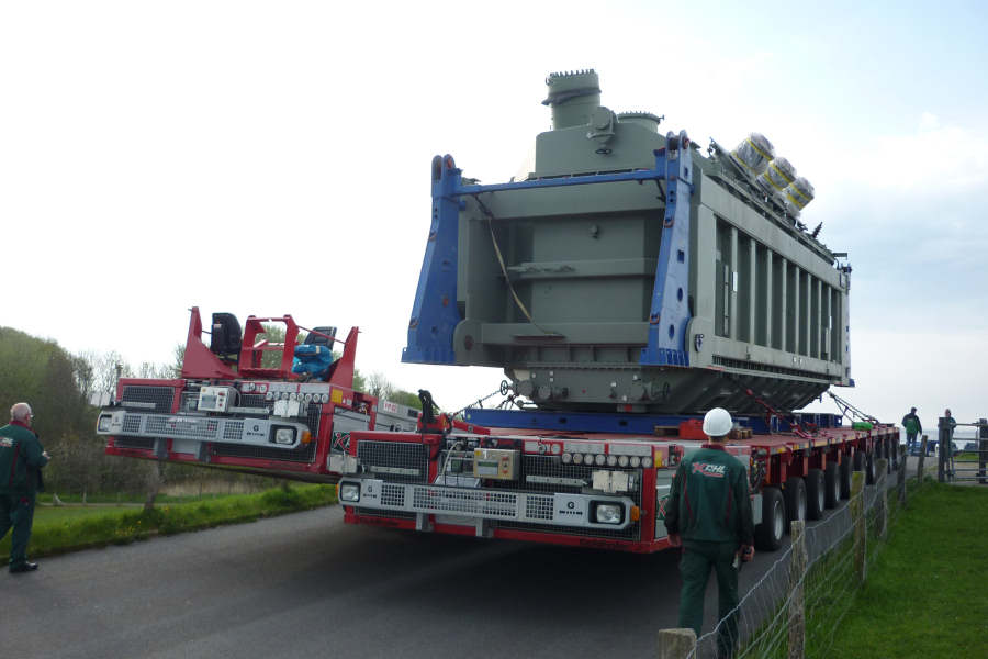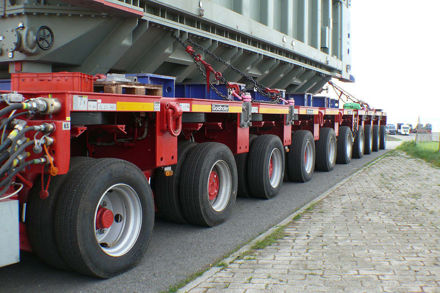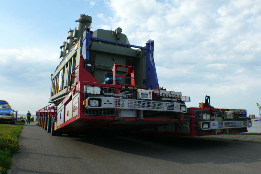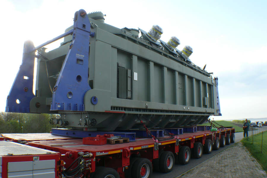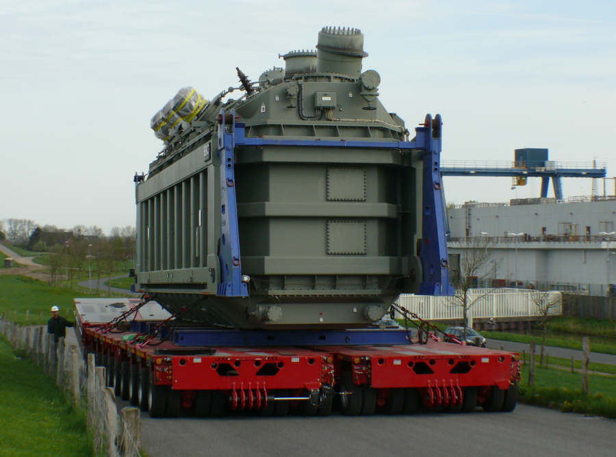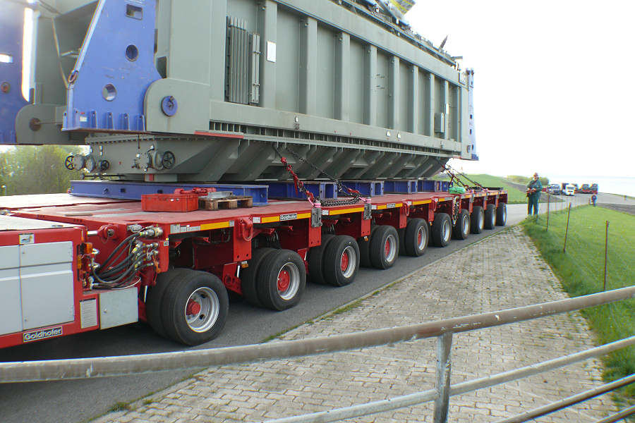 Kahl-Schwerlast 400 t Trafo Transport an der Unterelbe