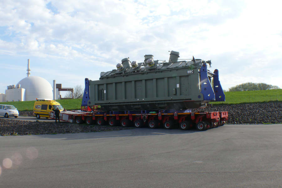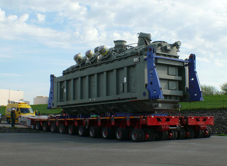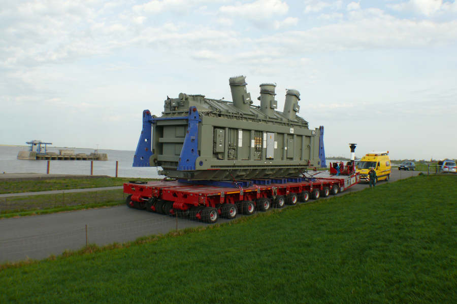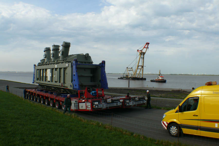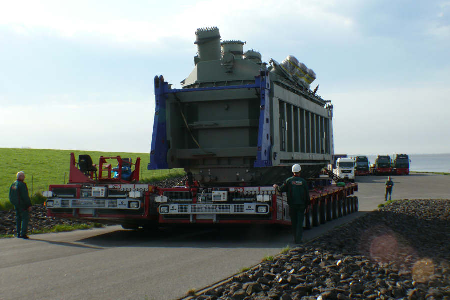 Kahl-Schwerlast 400 t Trafo Transport an der Unterelbe