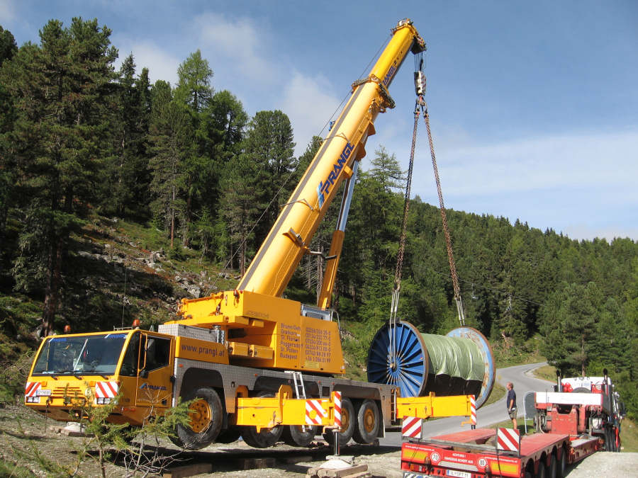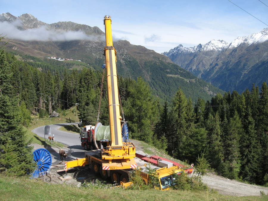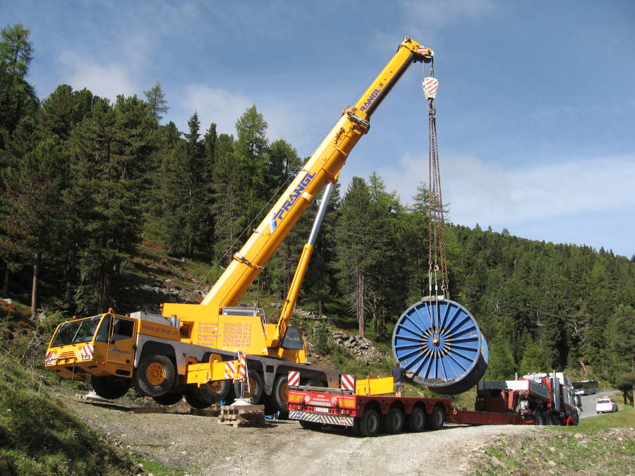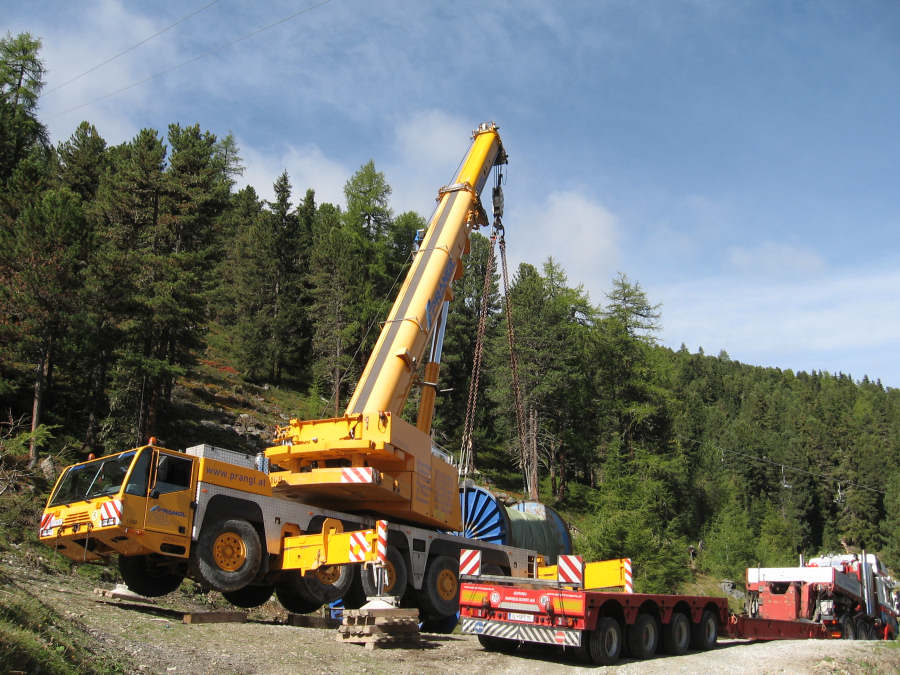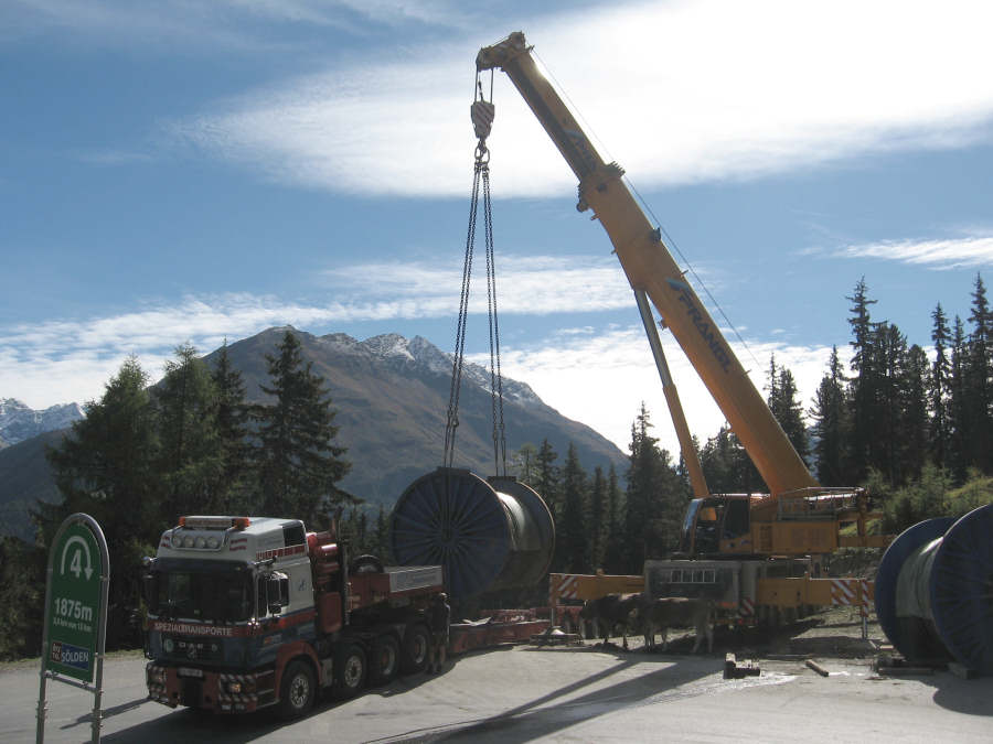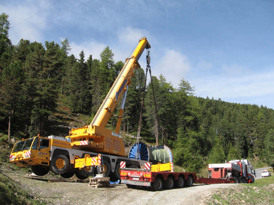 Transport einer Seiltrommel für eine Bergbahn