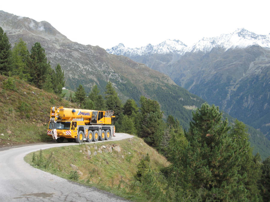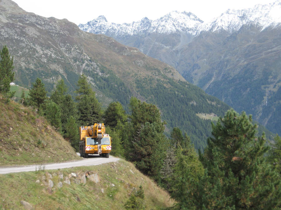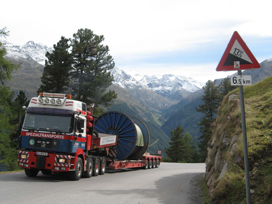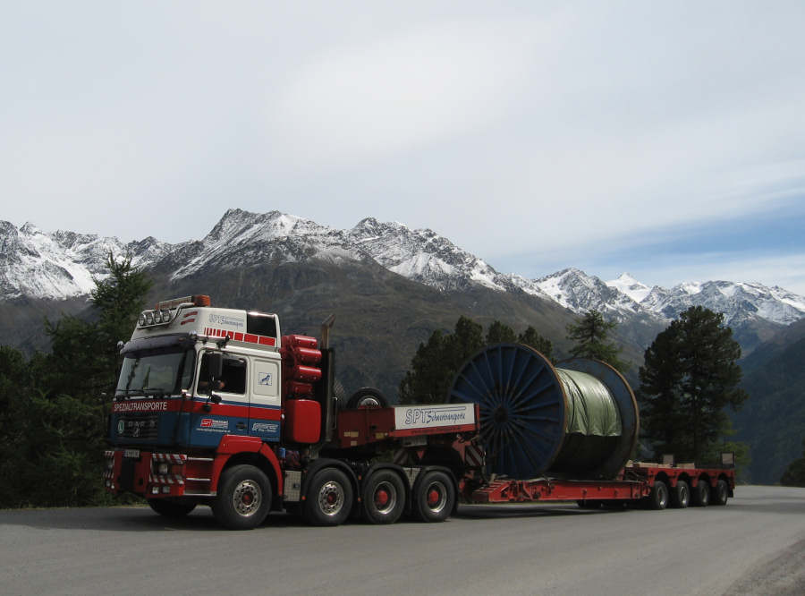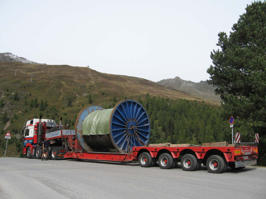 Transport einer Seiltrommel für eine Bergbahn