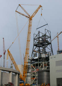 Im Herbst kam dann ein brandneuer Terex Demag CC 6800 von Sarens zu Einsatz um den Gerüstturm