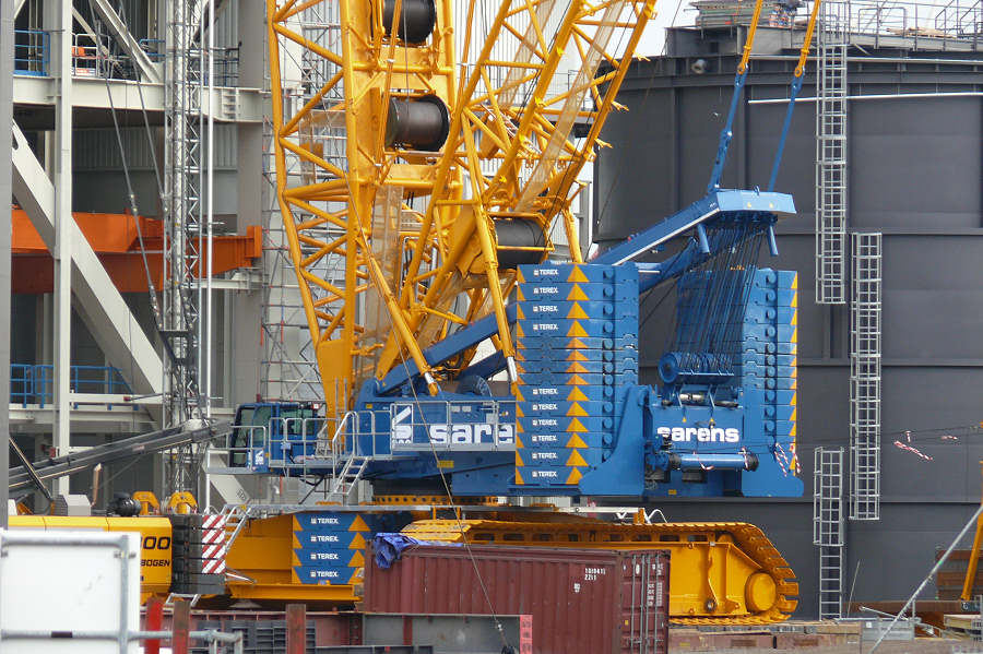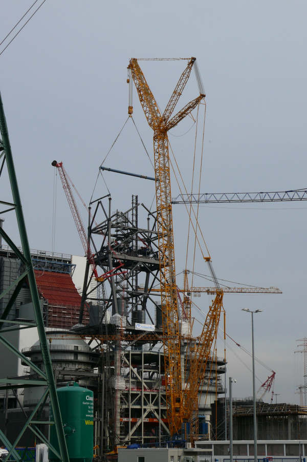 Montage der Abgaskamine der Rauchgasentschwefelungsanlage im Kraftwerk Moorburg