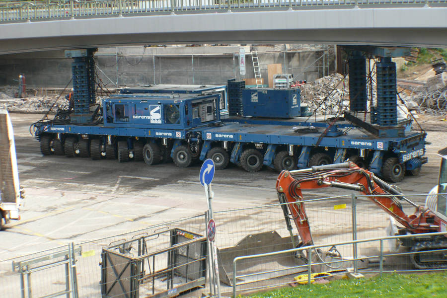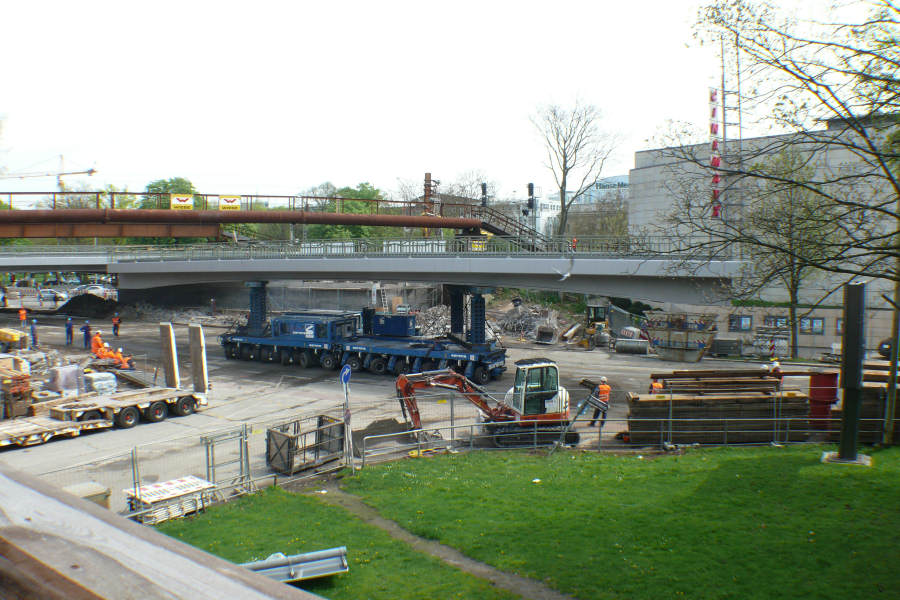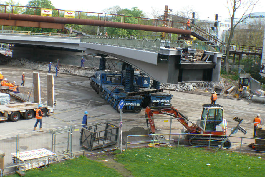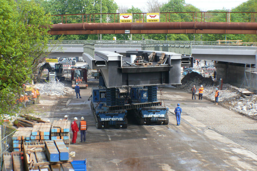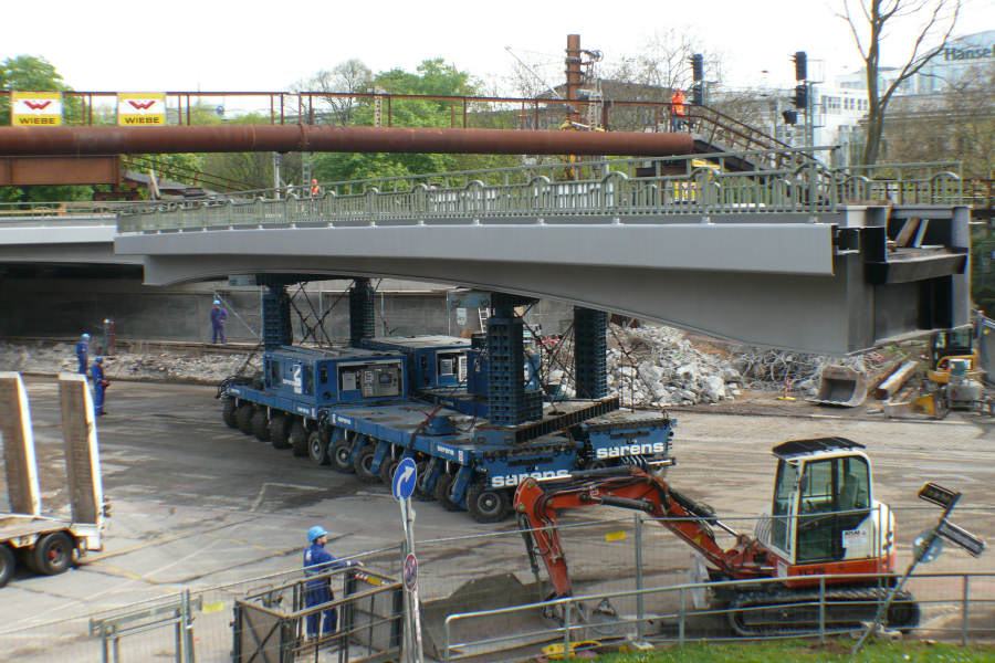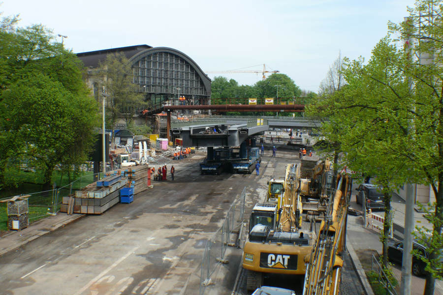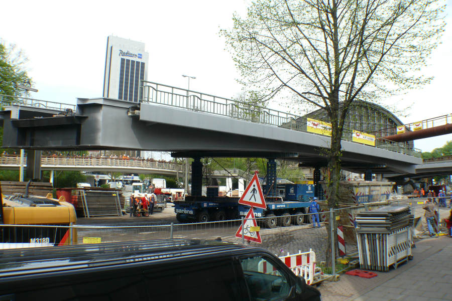 Einfahren eines 260 t schweren Überbaus am Dammtorbahnhof