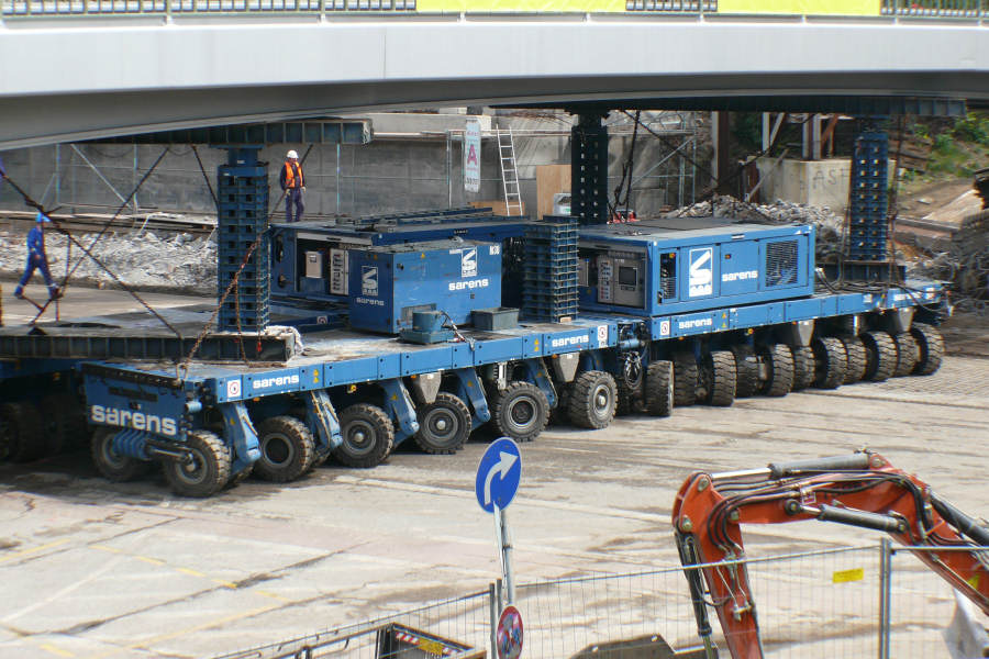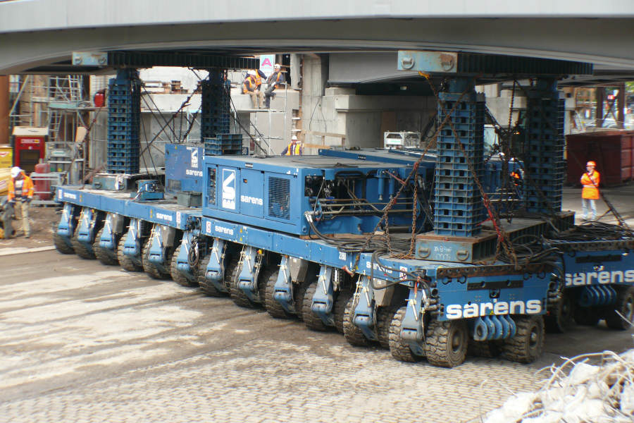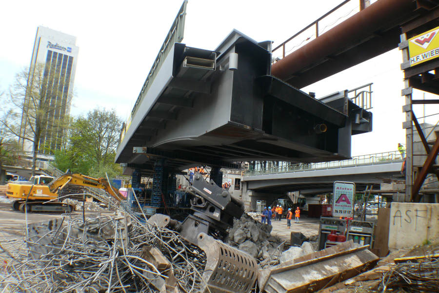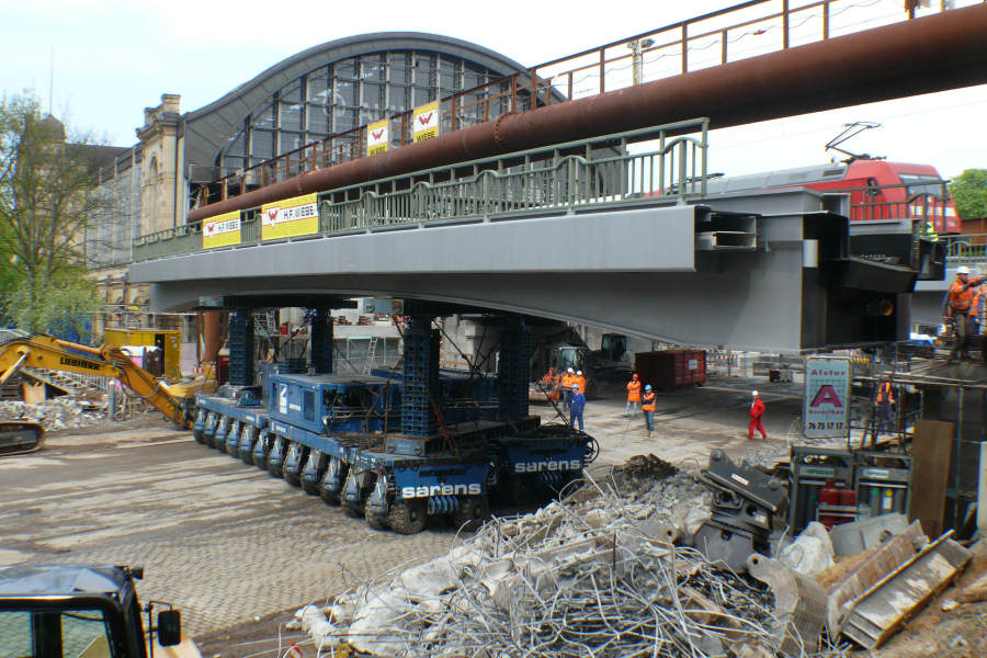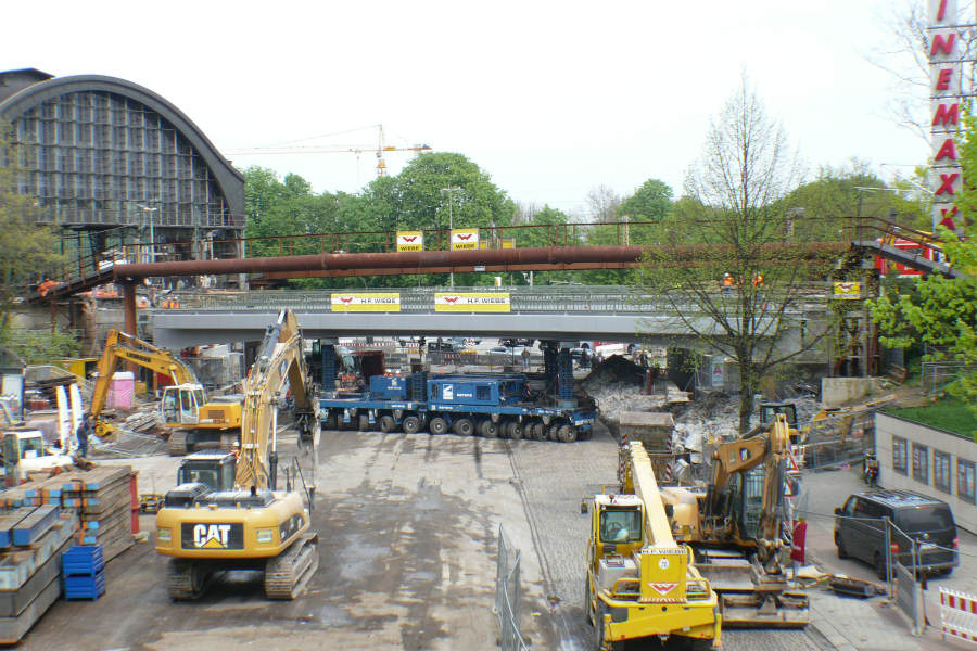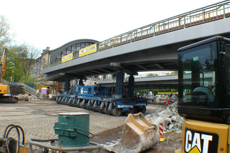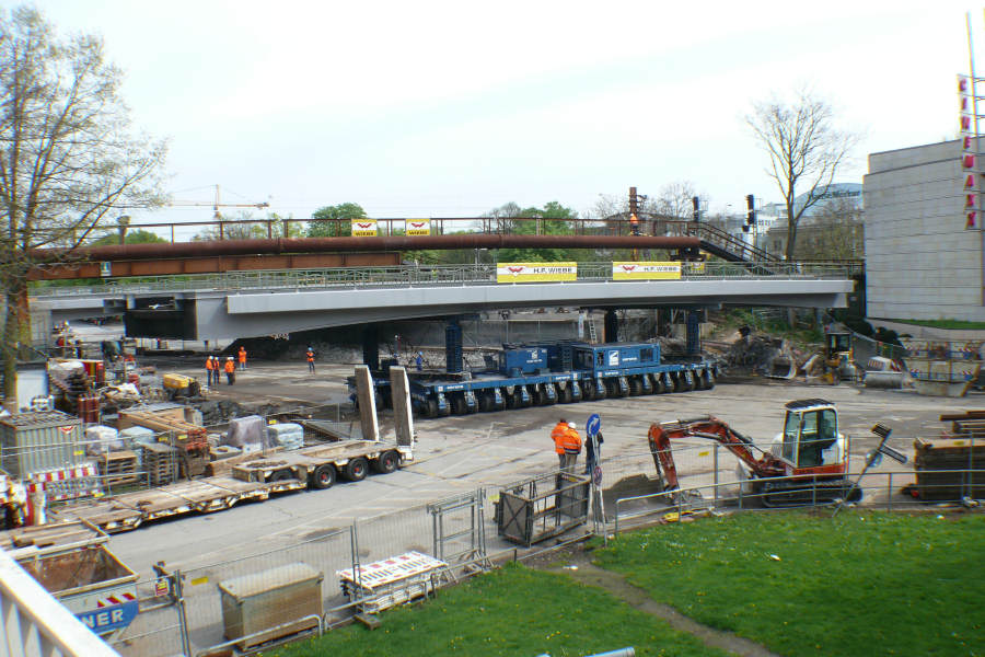 Einfahren eines 260 t schweren Überbaus am Dammtorbahnhof