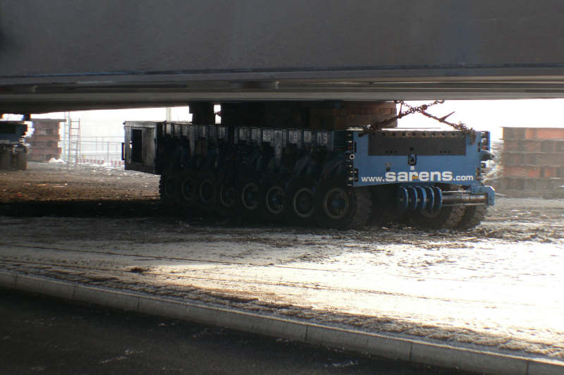 Für das verfahren der Brücke war Sarens aus Belgien mit vier Kamag Selbstfahrern (SPMT) nach Hamburg gekommen