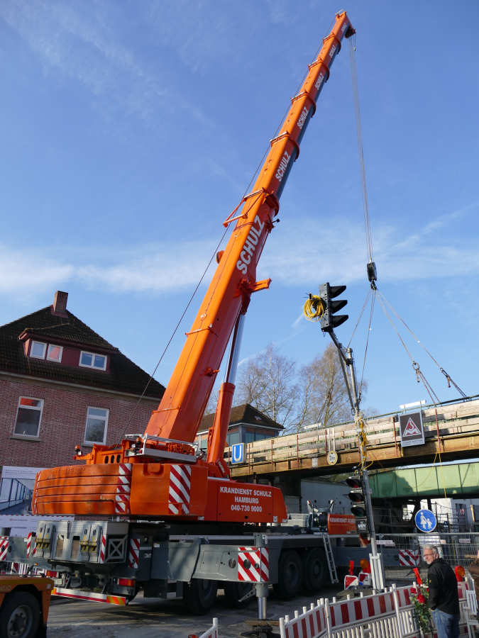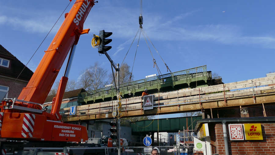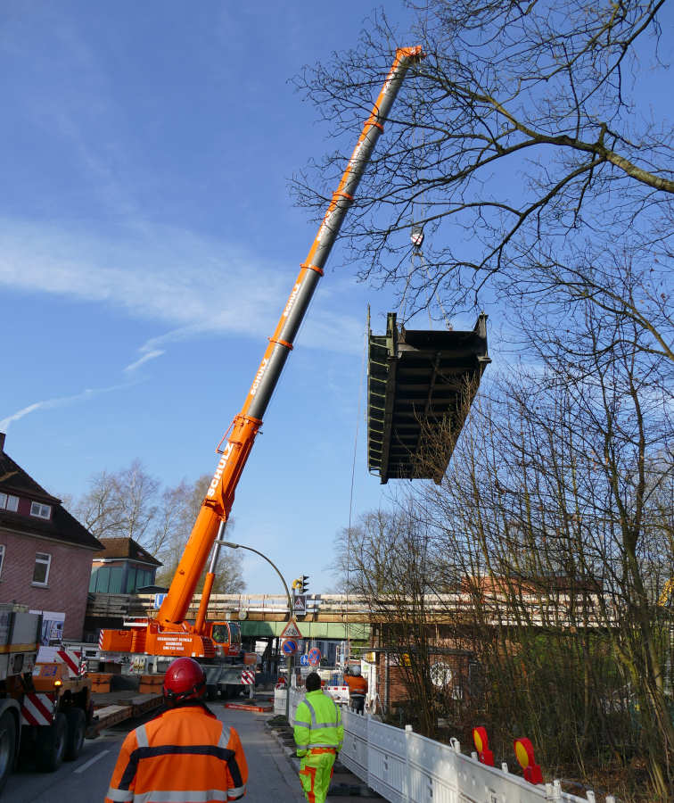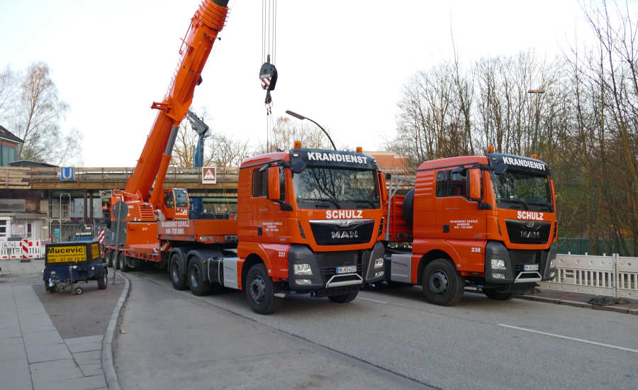 Krandienst Schulz und Rolf Riedel beim Hochbahn Brückenbau im Einsatz