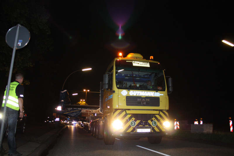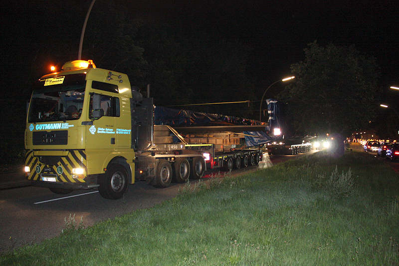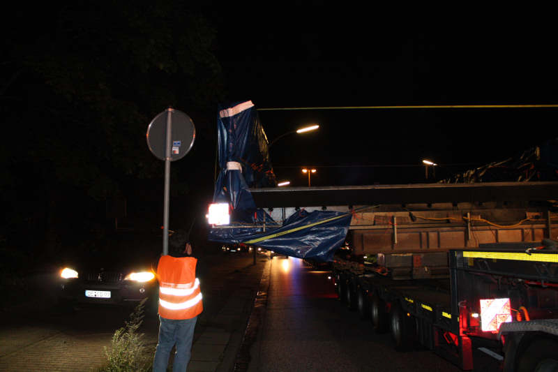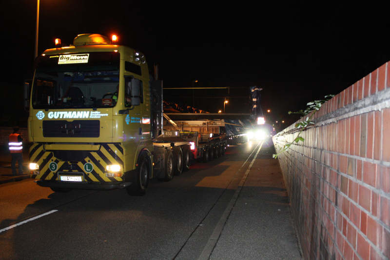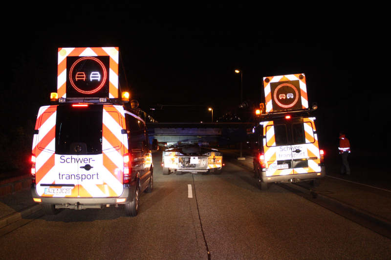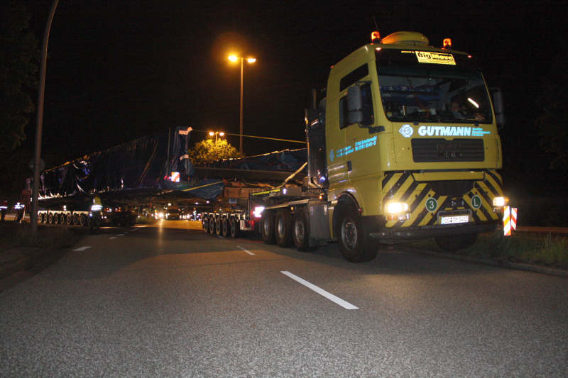 Nächtlicher Brückentransport durch Hamburgs Norden
