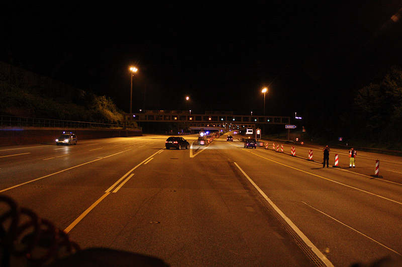 Es mußte im Gegenverkehr durch den Elbtunnel gefahren werden, hierzu wurde die vierte Röhre voll gesperrt.