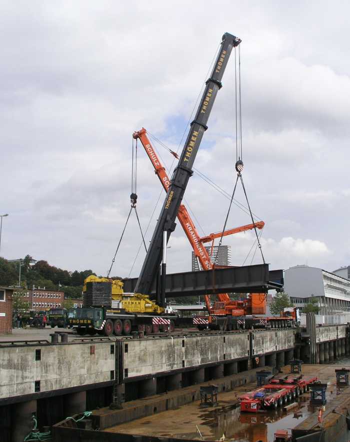 Umladung einer 150 t schweren Hochbahnbrücke am Hamburger Fischmarkt