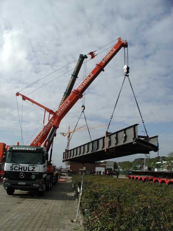 Umladung einer 150 t schweren Hochbahnbrücke am Hamburger Fischmarkt