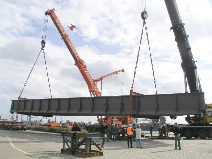 Umladung einer 150 t schweren Hochbahnbrücke am Hamburger Fischmarkt