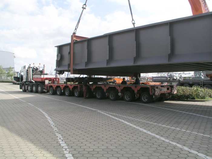 Umladung einer 150 t schweren Hochbahnbrücke am Hamburger Fischmarkt