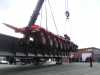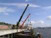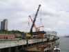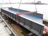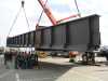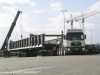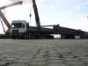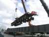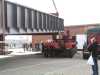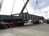 Brücke für die Hamburger Hochbahn von einem Ponton auf einen Strassentransport umgeladen. Die Brücke