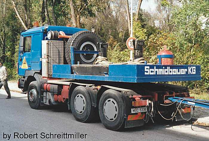 Begleitfahrzeug: MAN F2000 27.463, M-C 5330, Standort : München.