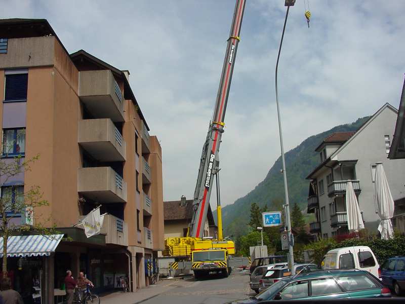 Der Kran ist mit 55 t Ballast und Klappspitze aufgerüstet.