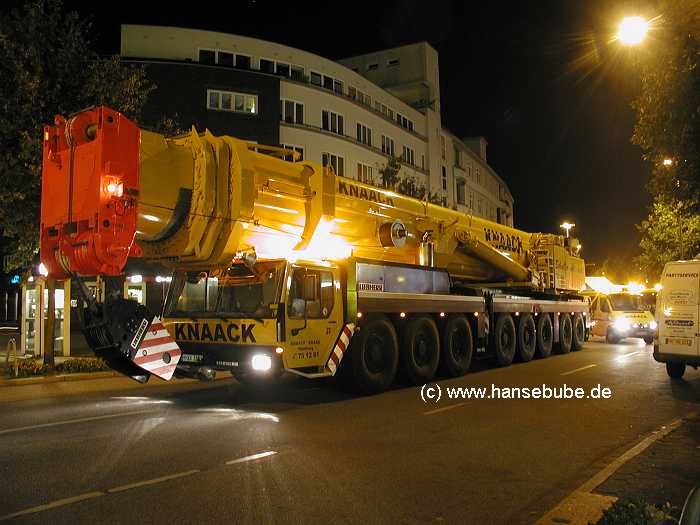 Der LTM 1500 bei der Ankunft am Abend vor dem Hub