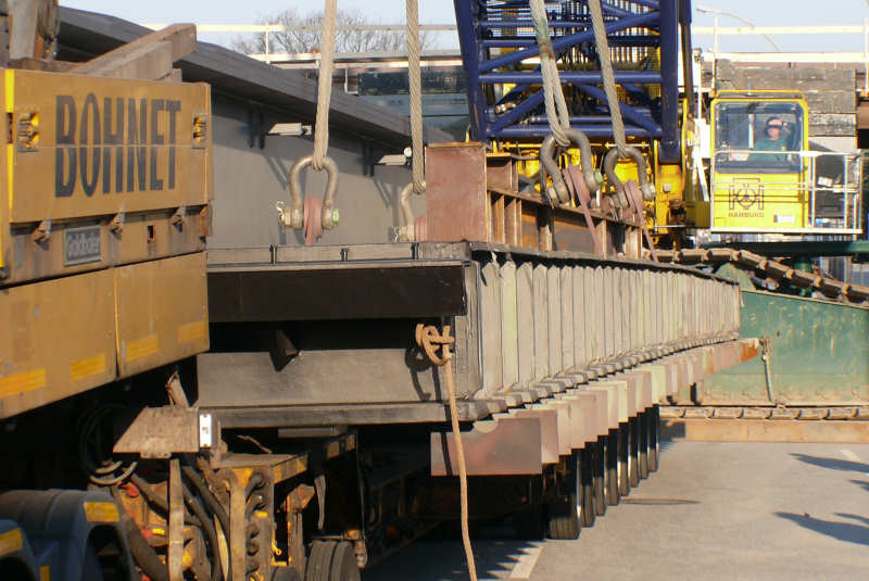 Die neue Brücke bestand aus vier Einzelteilen, wovon die kleineren rund 40 t