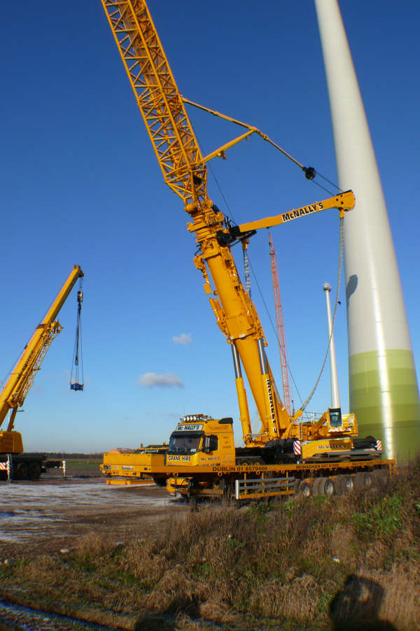 Einer der ersten einsätze des 1200 t Kranes von Mc Nally's Crane Hire führte das Gerät in den Windpark Bartelsdorf,