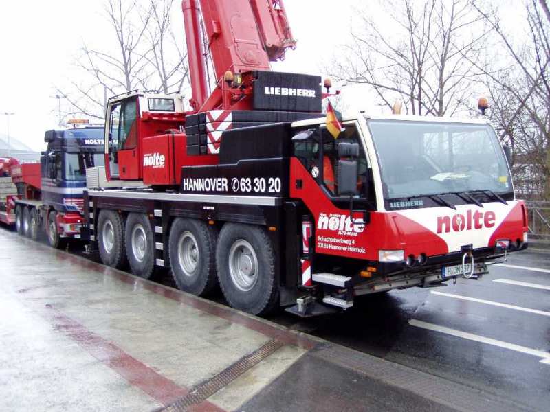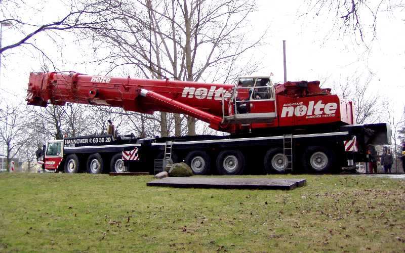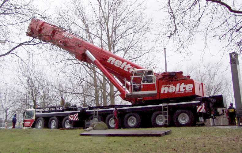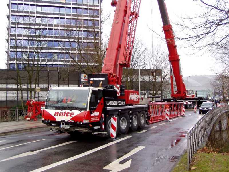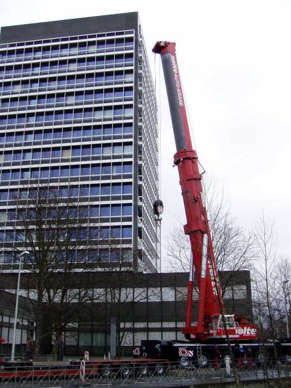 Hier zieht der 60er gerade ein kleines 7m Gittermastteil aus dem großen Gitterteil.