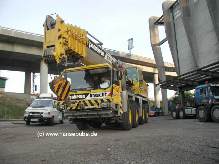 Der Kran mußte kurzfristig für einen verunfallten 80 Tonner einspringen um einen 800 t Kran