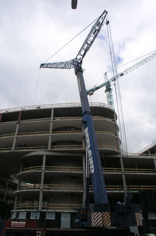 an einer Baustelle, durch den GMK 6300 von Seeland demontiert.