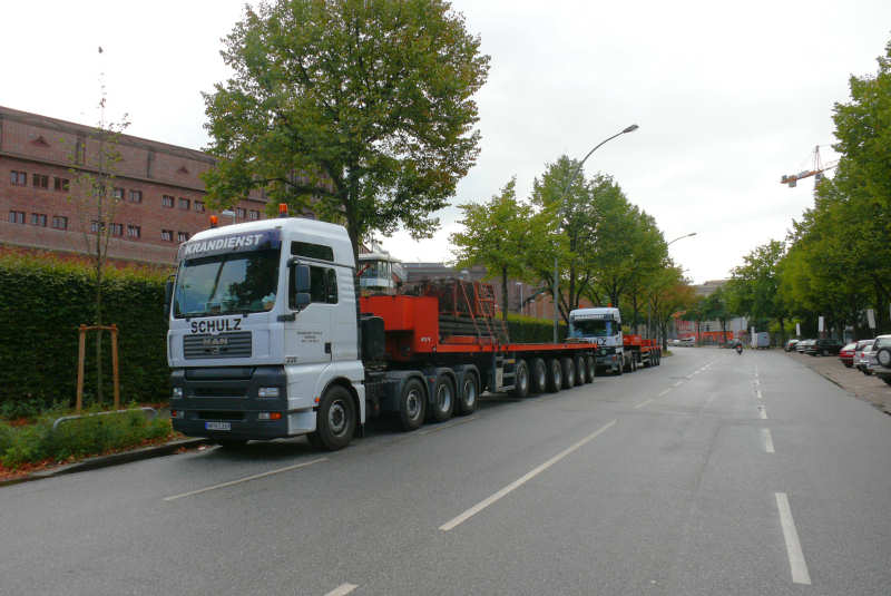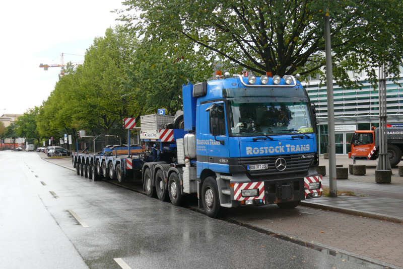 Der Transport wurde durch Rostock Trans mit einem MB 4153 mit 10achs Goldhofer