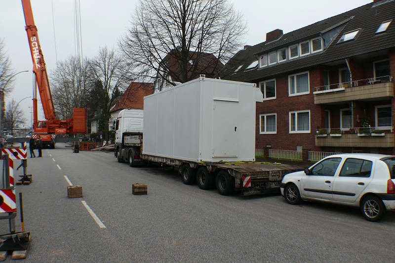 Einhub eines Notstrom Aggregates in HH Wandsbek