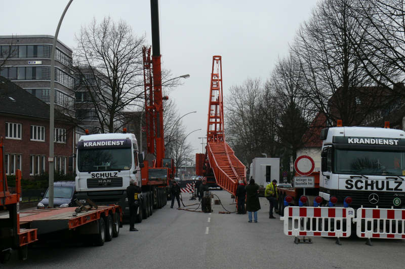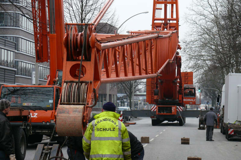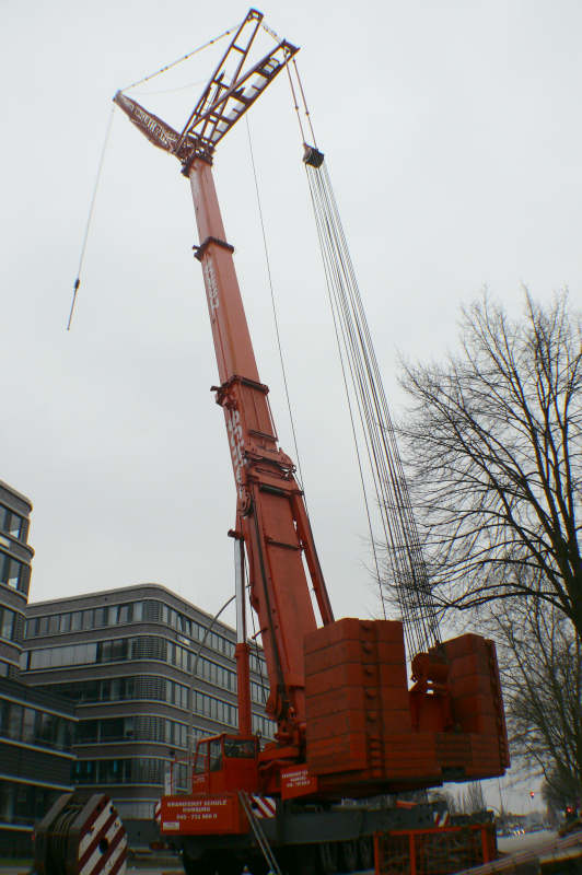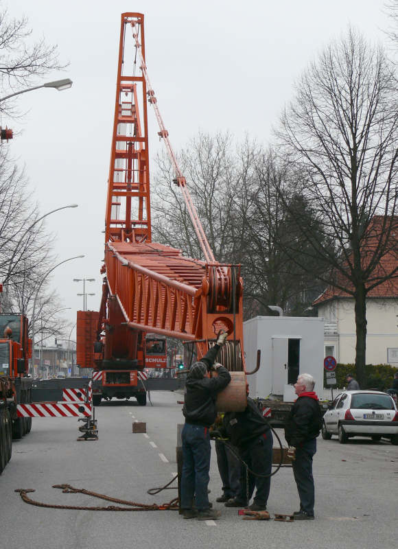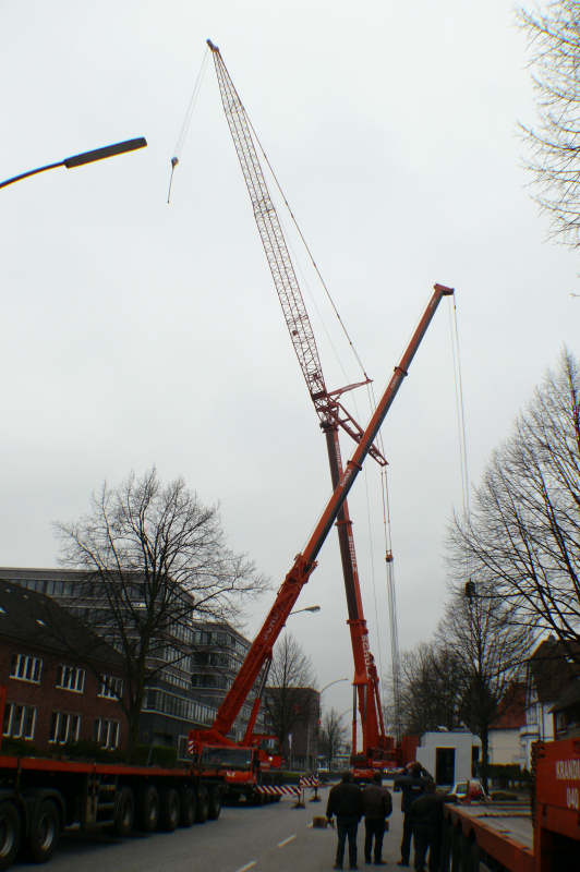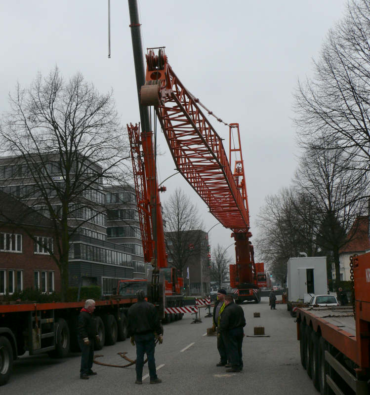 Der Kran war mit 49 m Wippspitze und 125 t Ballast ausgerüstet.