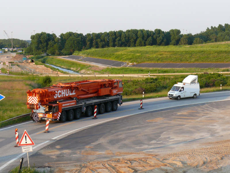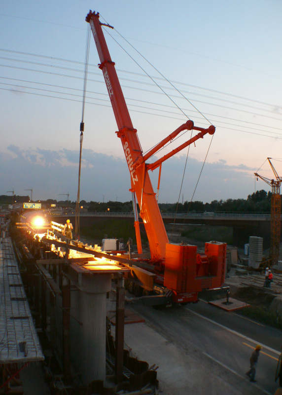 Nach rund 90 Minuten ist der Kran dan zugbereit, inzwischen wird es dunkel.