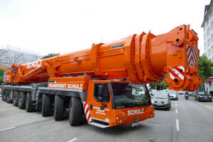 Max. Traglast bei Ausladung: 500 t bei 3 m Radius