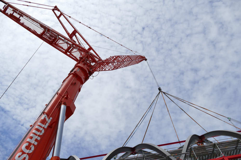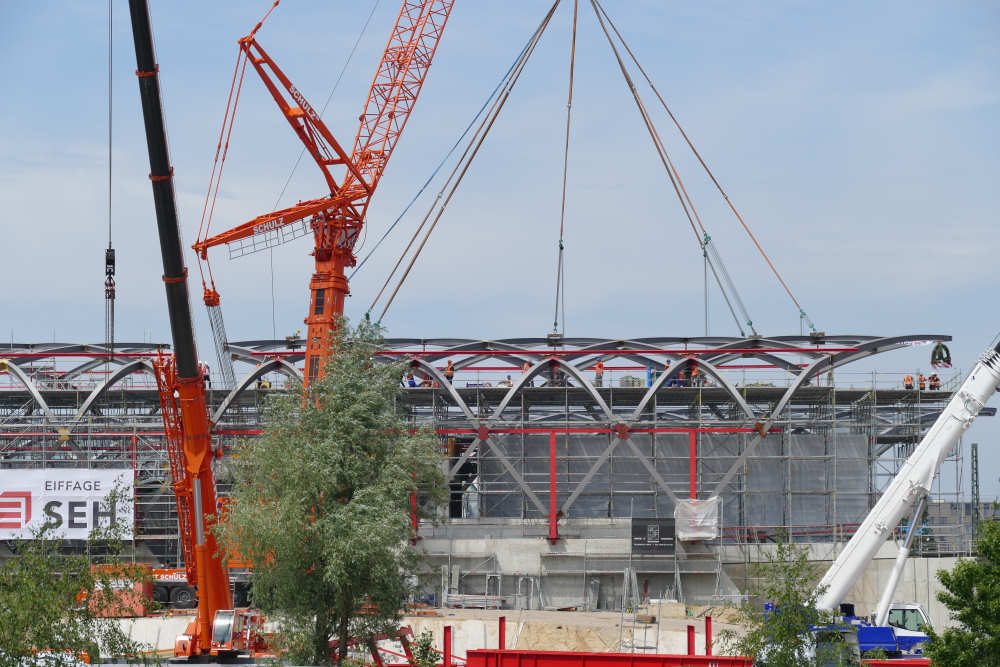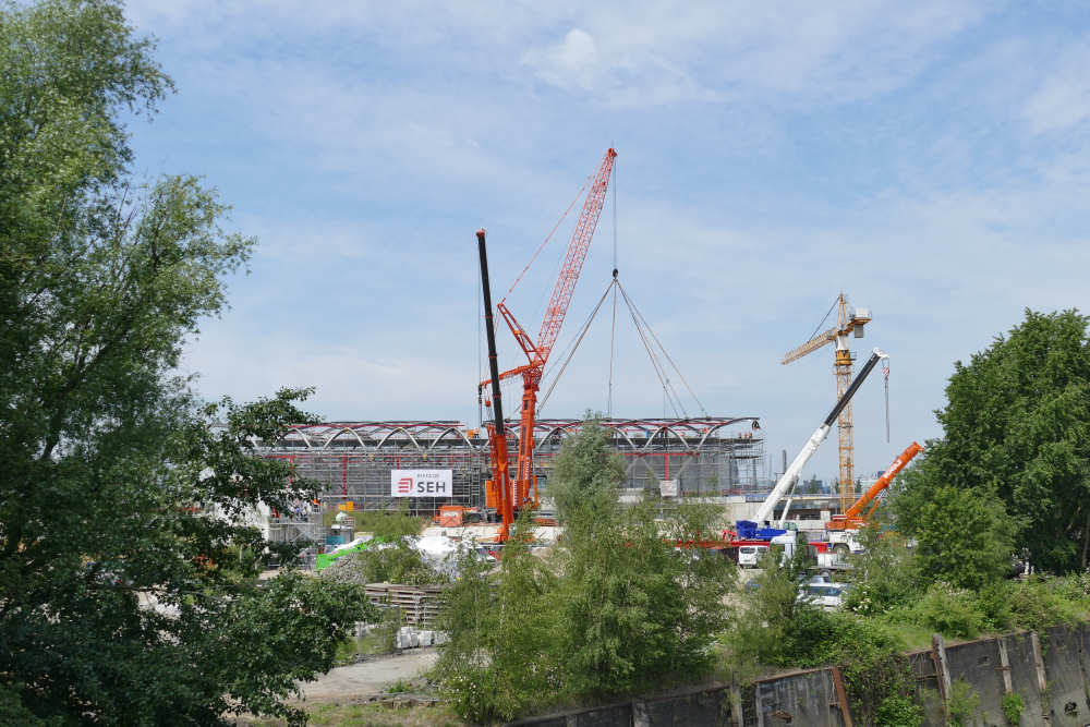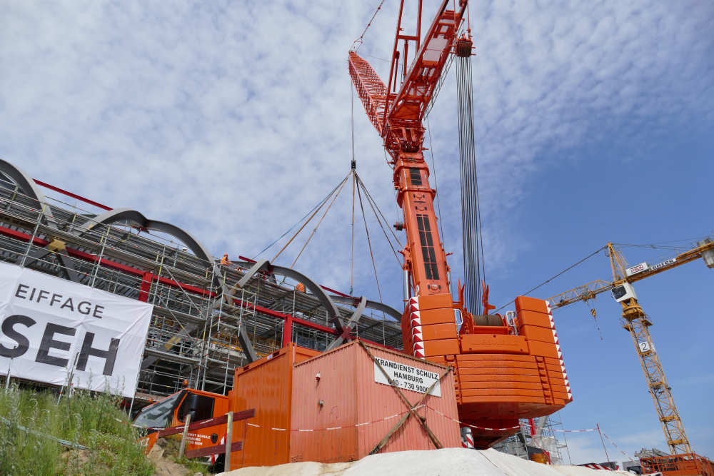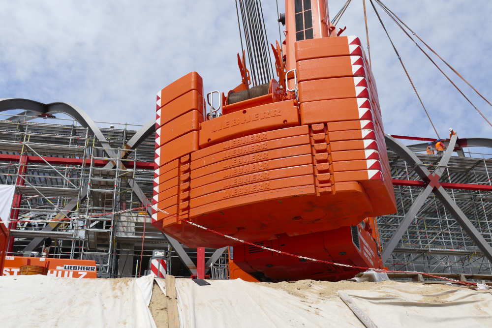 LTM 1500-8.1 Montage letztes Dachteil S Bahnhof Elbbrücken, 42 m TN