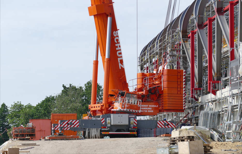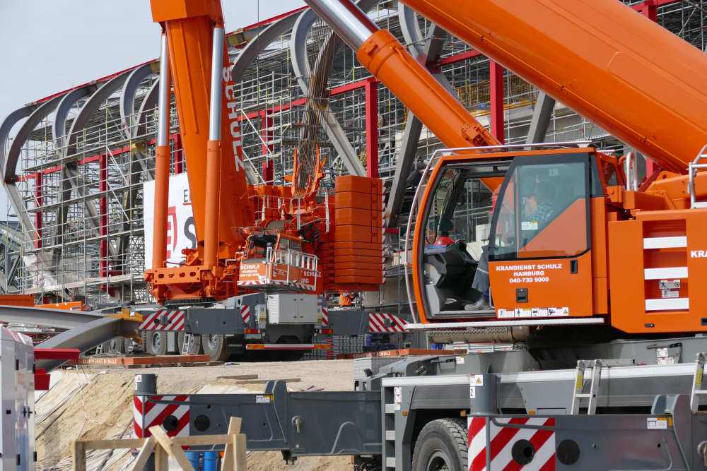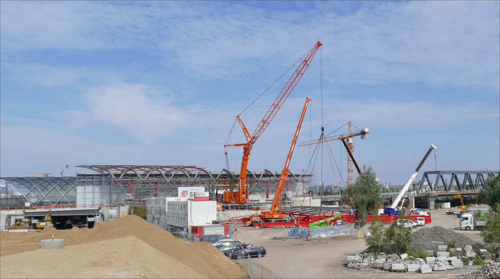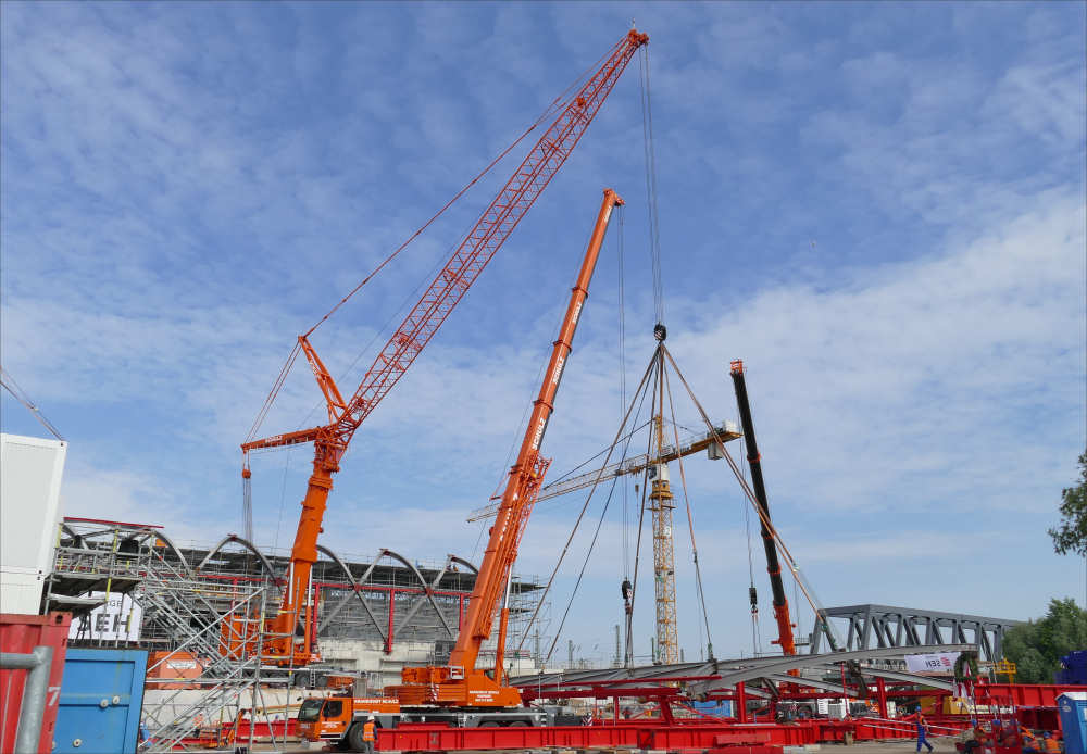 LTM 1500-8.1 Montage letztes Dachteil S Bahnhof Elbbrücken, 42 m TN