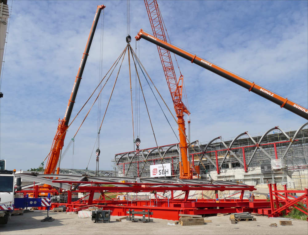 Die Dachsektion, bestehend aus zahlreichen Einzelteilen hatte ein Gewicht von ca 48 t.