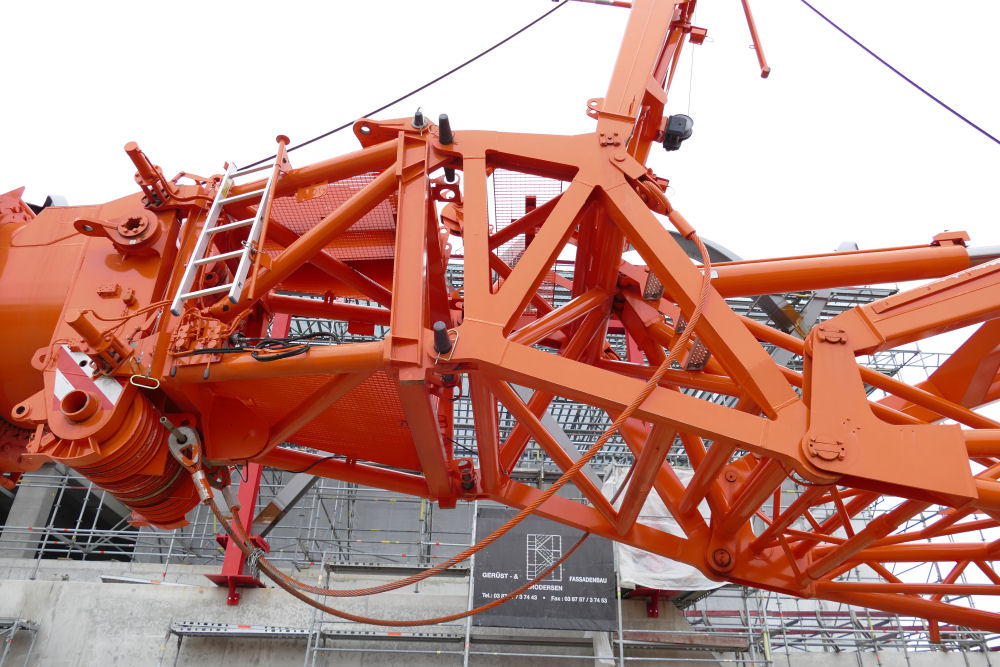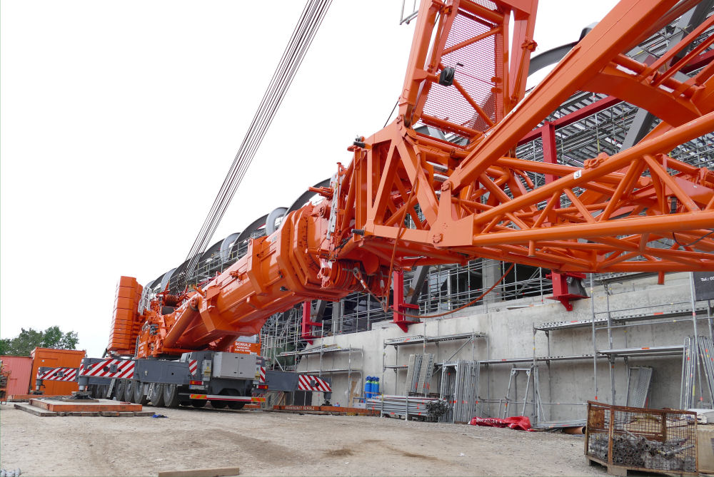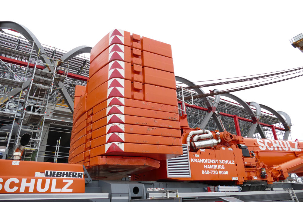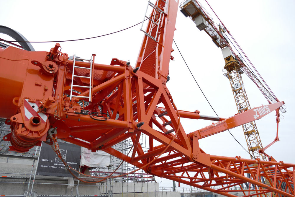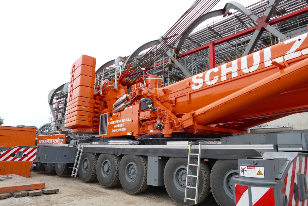LTM 1500-8.1 mit abgelegter Wippspitze S Bahnhof Elbbrücken, 49 m TN
