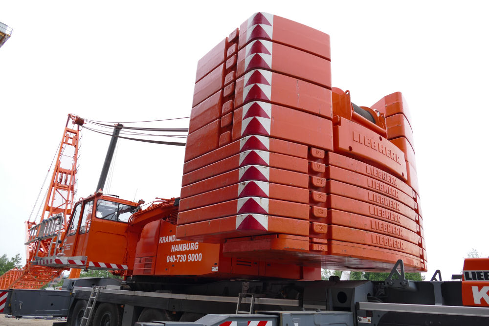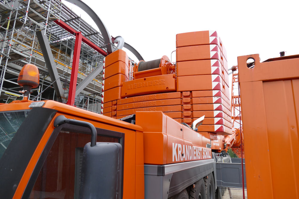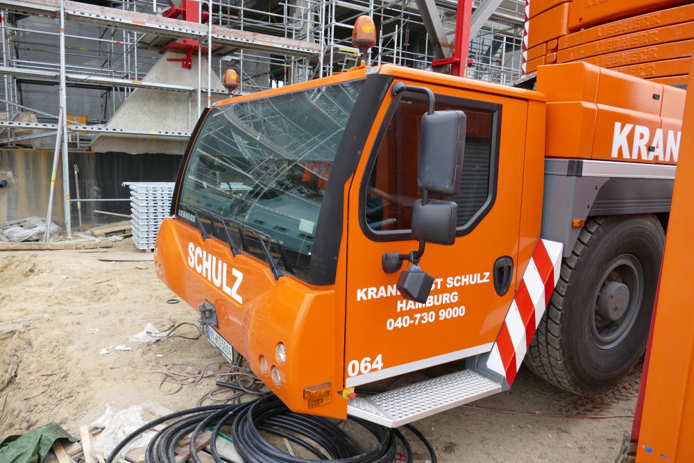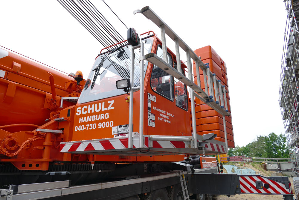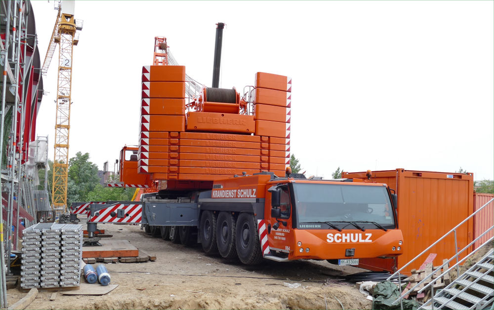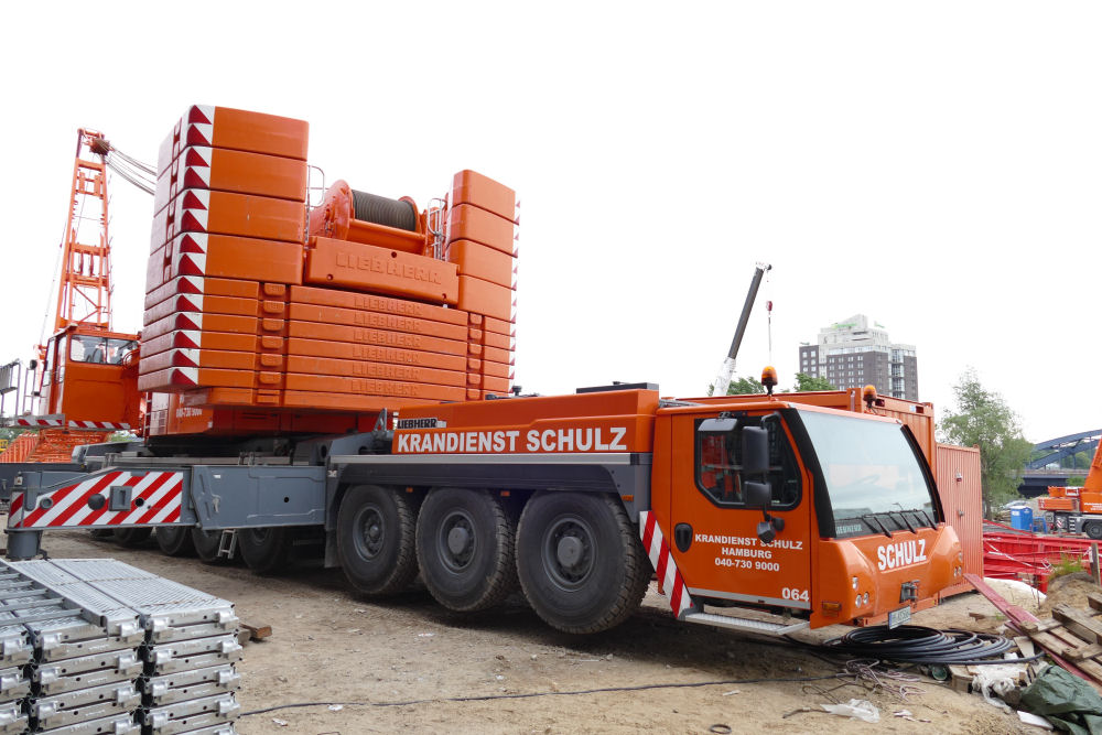 LTM 1500-8.1 mit abgelegter Wippspitze S Bahnhof Elbbrücken, 49 m TN