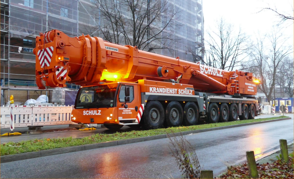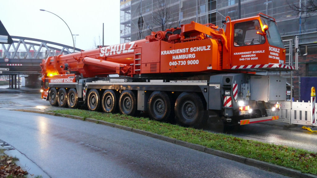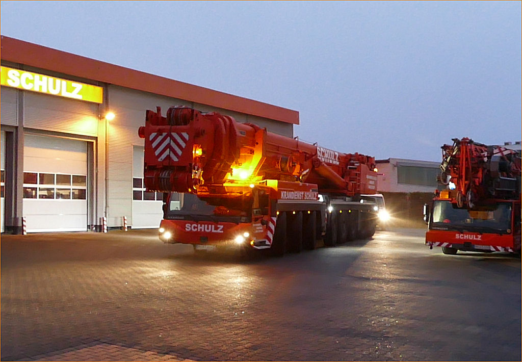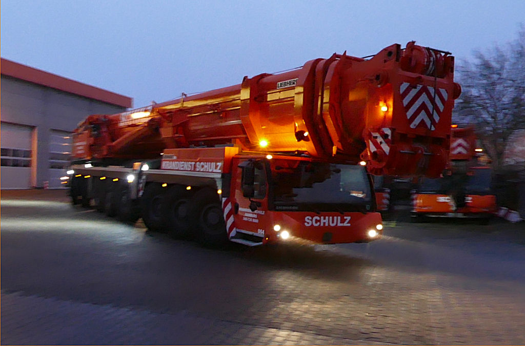 Auftraggeber war die Spedition Griebel & Mahncke, welche selber nicht über Krane diese Traglastklasse verfügt.