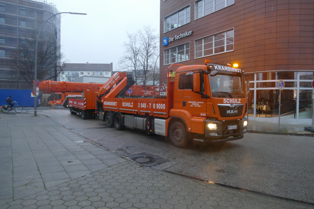 Die Aktion begann gegen 8.00 Uhr an einem Sonntag Morgen, da Arbeitsbeginn erst um 9.00 Uhr an der Baustelle sein durfte.