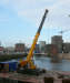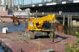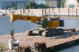 zur Demontage einer Rohrbrücke im Hamburger Oberhafen ein.