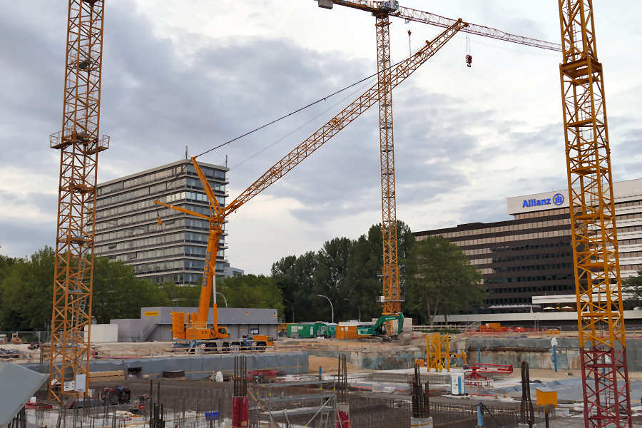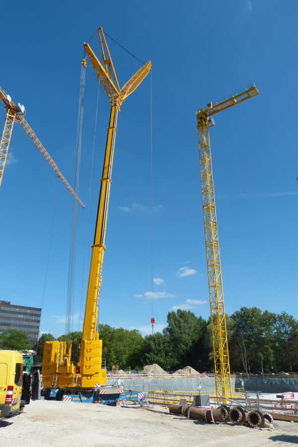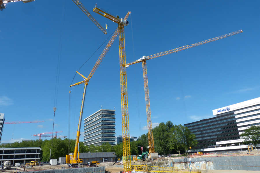 in der City Nord, in Hamburg im Einsatz. Ausgerüstet mit Gitterwippspitze wurde